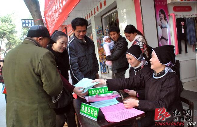 —分享— 工商局干部为群众提供咨询服务 县科协向群众宣传法律科普常识 通道新闻网讯:3月5日上午,在“三八”国际劳动妇女节103周年来临之际,通道县妇联联合司法、公安、法院、残联等20余个单位开展了以“学习法律促和谐”为主题的“三八”妇女节维权周法律宣传活动,活动当天发放了《劳动法》、《婚姻法》、《妇女权益保障法》等700余册,发放维权资料近3000余份,前来咨询的群众近2000余人次,进一步增强了全县广大妇女群众的法律维权意识。 来源:中国通道 作者:张红 杨沙 编辑:redcloud