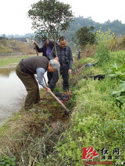 据悉,下都天村是全县著名的长寿村,全村总人口虽只有460余人,但80岁以上老人有16人,90岁以上老人10人,其中年龄最大的102岁。在植树现场,村主任吴立川兴高采烈地告诉:“村里将在这里建一个大型鱼塘,到时候,鱼塘四周绿树成荫,老人们可以在这里休闲垂钓、散步、聊家常等,这不仅能增加村里的集体收入,美化村寨环境,更是为咱“长寿村”里的老人们建造了一处精神家园,相信今天植的这些树一定会像我们长寿村的村民一样能茁壮成长”。此次植树活动种下桂花树及黄槐各200余株,柳树100余株,受到了村民们的一致好评。