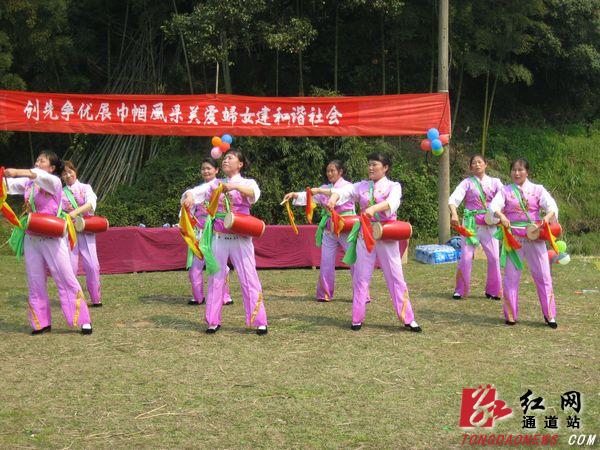 活动没有专门搭建的舞台,没有红地毯,有的只是大自然的青草绿叶,是文艺爱好者热情的奉献和围观群众爽朗的笑声。庆“三八”文艺汇演在欢乐腰鼓声中拉开帷幕,舞蹈《吉祥谣》、《好运来》动作优雅,体现着人们对美好生活的祝愿与憧憬;《调羹舞》、《采茶舞》借助现实生活中的道具,展示着劳动中女人的勤劳;自编的三句半更充分发挥了女人的智慧······女同胞们用自编、自演、自导的17个节目,赢得了在场200余名群众热烈的掌声。