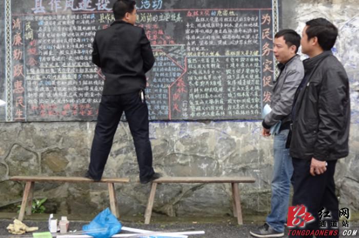 —分享— 通道新闻网讯:近日,清明临近,森林防火形势严峻,我县商务局抽调工作队员运用村部宣传栏进行普法、森林防火及民调概念等宣传。图为3月25日驻村工作队员在西流村出黑板报场景。 来源:中国通道 作者:陈能继 编辑:redcloud