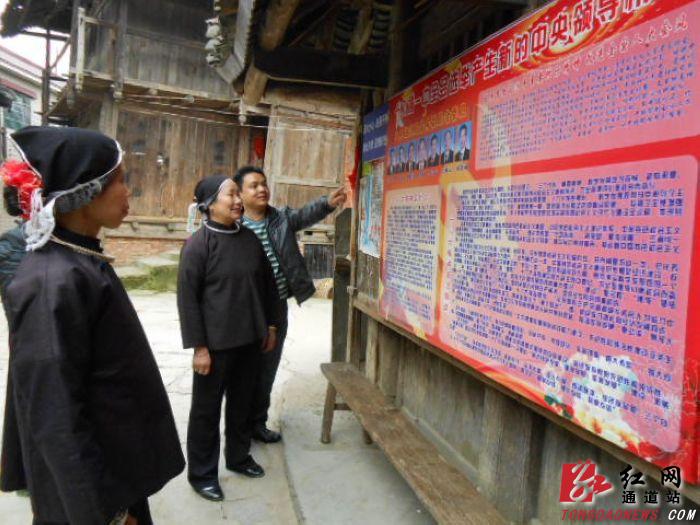 —分享— 图为该乡党委书记下村进行宣教活动 通道新闻网讯:为深入宣传和学习十八大精神,通道县黄土乡利用固定宣传栏到各村开展新一轮的宣教活动,即由政府制作统一的宣传栏,悬挂在各村寨人群聚集的公共场所,并由驻村干部候点进行宣教。 来源:中国通道 作者:杨彦辉 黄欢芳 编辑:redcloud