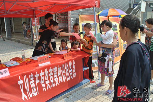 此次活动依托我县丰富的文化资源,宣传形式多种多样。各单位围绕文化遗产日活动主题,设宣传点与咨询台,精心制作了20块宣传展板,图文并茂,生动展示了我县文物保护、非物质文化遗产、侗寨申遗等成果。此外,通过开展文化遗产保护万人签名活动,让广大群众知晓文化遗产保护,争当遗产保护的参与者。同时,还开展了文化遗产知识竟赛有奖抢答活动,通过对文化遗产保护、文物法和我县文化遗产等相关知识进行提问,吸引广大群众积极参与,从而提高市民自觉参与文化遗产保护的意识。