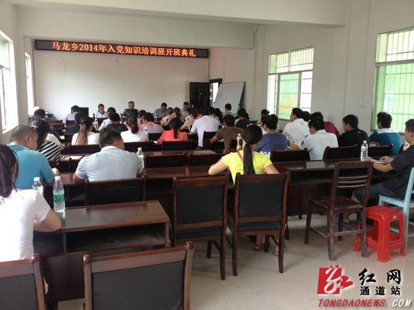 为加强入党积极分子队伍建设,6月16日至17日,马龙乡举办了为期两天的入党积极培训班,全乡43名入党积极分子参加了此次培训学习。该乡队培训内容进行了精心按安排,在党的理论知识学习方面,除了由乡负责人就端正入党动机问题给学员上党课外,还就《党章》、党的组织原则和纪律对学员进行了专题培训,并理论培训结束后对学员进行了闭卷考试检查验收。此外,为增强培训的实用性,在实践活动方面,该乡组织学员参观考察了下乡乡泥鳅养殖基地、钩藤种植基地的产业建设,学习考察了菁芜州镇地朗坪村的新农村建设经验,并前往县溪镇恭城书院接受了党史教育。