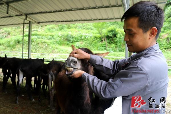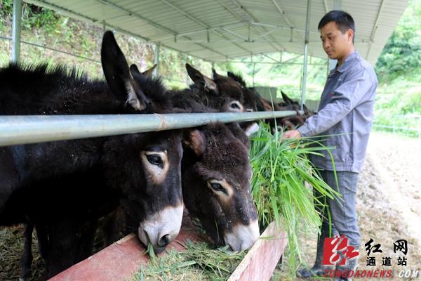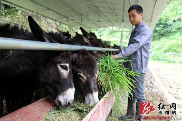 —分享— 在驻村工作队的帮助下,石周领养了12只毛驴 温顺的毛驴在主人地引导下做起鬼脸 石周在给毛驴喂食青草 青草打碎后就能玉米一起给毛驴喂食 通道新闻网讯:6月10日,在湖南省通道侗族自治县独坡镇独坡村,贫困户石周正在给毛驴喂食青草。 近年,该村引导村民通过“公司+合作社+农户”的模式,发展毛驴、胡蜂等特色养殖业,带动农民增收。 来源:通道融媒 作者:李尚引 石海科 编辑:redcloud