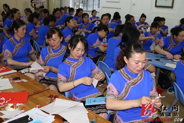 —分享— 通道新闻网讯:6月16日晚,通道县幼儿园组织开展了教师剪纸学习活动。活动中,来自通道思源学校的剪纸教师吴晨年为老师们讲解了剪纸的发展历程、构图方法及制作步骤。观看示范后,老师们很快进入了状态,掌握了撕纸、剪纸的基本方法。老师们聚精会神剪起来,一张张红纸在老师们的手中变成了一件件生动的作品。 作者:何梦怡 吴玉玲 编辑:redcloud