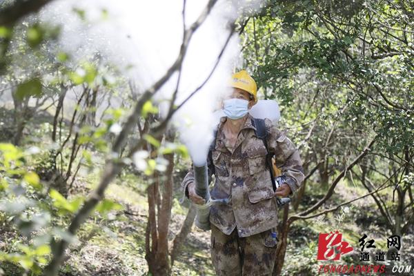 “历年来我们通道县油茶的种植面积比较大,根据每年虫情测情况进行林业有害生物的防治,这个油茶的森林病虫害有点多,但主要是以食叶性的害虫为主,这次开展的工作主要是针对这个油茶食叶性的害虫展开防治”,该县县林业局森林病虫害防治站站长陆安信说道。