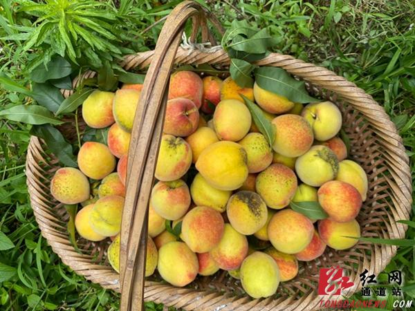 通道新闻网讯:近日,在双江镇芋头村金湘玉黄桃基地,一颗颗金黄的果实挂满了枝头,村民们正在采摘黄桃,准备装箱外销,前来采摘的游客也络绎不绝,这是芋头村推行“村企合一”助力脱贫攻坚的一个缩影。