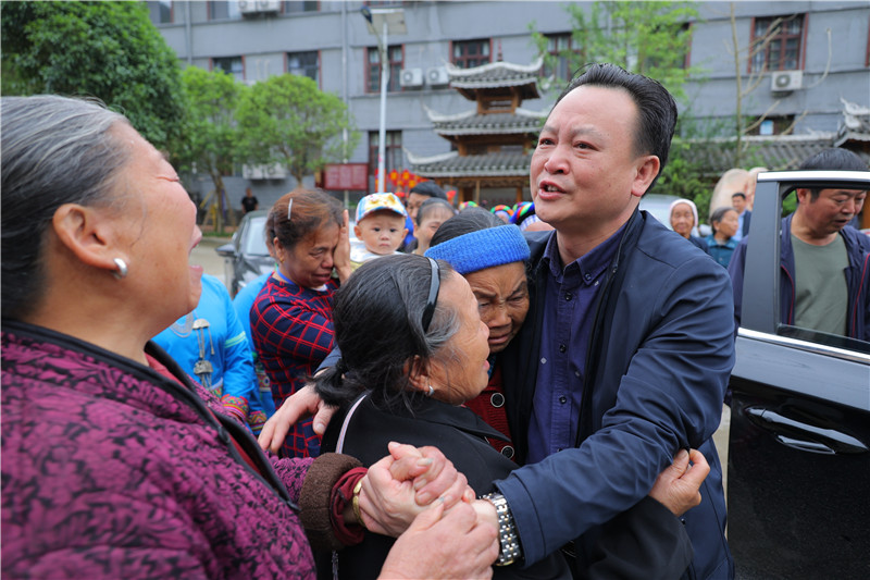 出发前,工作队长罗平来到办公室与村党支部书记作了最后的工作叮嘱。知道工作队要离开,村民们一大早就自发来到村部楼送别,村民代表送上了锦旗,苗乡的群众不论老幼与工作队的同志们依依惜别,泪水流在脸颊上,兵书阁小学的老师和学生也赶来送别这些帮助他们争取项目资金重建校舍的好干部。