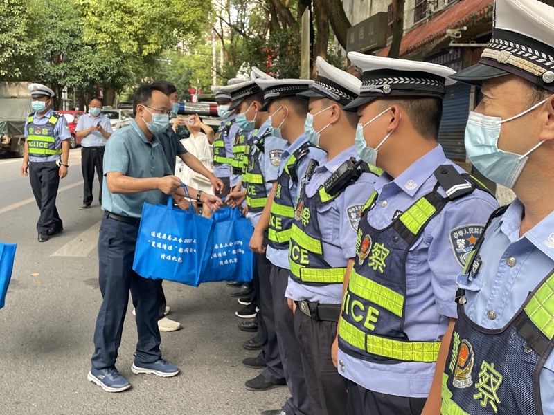 通道融媒8月5日讯:8月4日,县总工会组织在全县开展“夏送清凉”活动,为奋战在一线岗位的环卫工人、交警、巡特警、其他施工工人等送去防暑降温用品,切实把工会组织的关怀传递到广大干部职工的心坎上。县委副书记、县委统战部部长张春松出席活动。