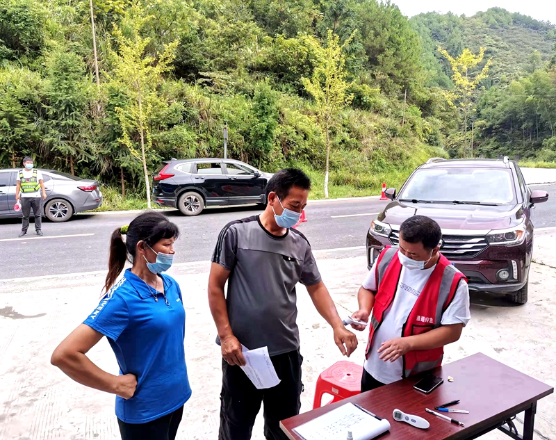 通道融媒8月16日讯:8月13日,正午时分,火辣辣的太阳炙烤着大地,在通坪公路连接广西交界处,来往湖南、广西的车辆川流不息,坪坦乡政府的“交通健康服务点”就设在这里。烈日下值守的工作人员汗流浃背始终坚守,毫不松懈,正对过往车辆进行逐一登记,开展“一测二验三询”检查。