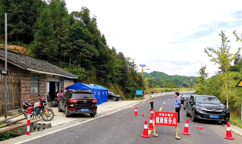 坪坦乡位于通道南部,湘桂两省(区)交界处,是出入湘桂两省(区)的重要通道,坪坦乡党委、政府迅速响应上级疫情防控要求,在通坪公路与广西交界处,设立交通健康服务点。成立“临时”党支部,由9名党员组成、乡党委统一领导,主要对过往车辆以及人员进行“一测二验三询”、劝返、宣传等方面做好疫情防控工作。连日来,“临时”党支部实行24小时应急值班值守,劝返外地车辆20余台、行人40余人,开展宣传50余次。