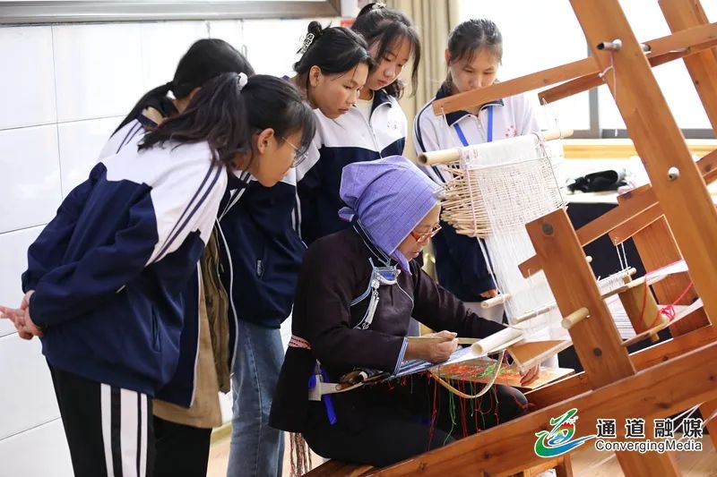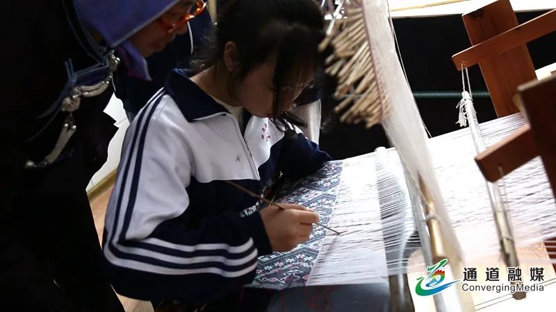 学生们跟着吴念姬老师学习侗锦织造的每一步流程,掌握和了解侗锦的织造技术和文化内涵,收获满满,大多数学生已经能上织布机独立完成侗锦织造。