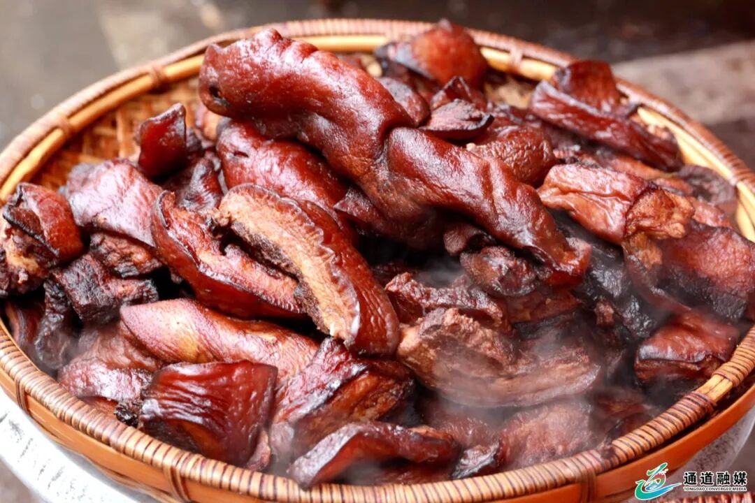 市场内,特色年货同样备受市民追捧。侗家红皮肉摊位前,色泽红润、香气浓郁的红皮肉整齐摆放,这道侗族传统年味美食,是不少市民过年餐桌的必备菜品。