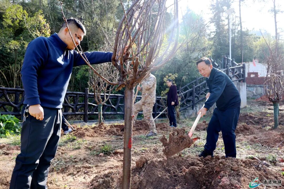通道融媒3月13日讯:春回大地万物苏,植树添绿正当时。3月12日,通道组织开展2026年全民义务植树活动。县委书记覃歇民,县委副书记、县长田刚,县人大常委会主任夏华,县政协主席刘登富登等全体在职县级领导和广大党员干部在溪口镇小水村参加义务植树活动,以实际行动践行绿色发展理念,为侗乡大地再添新绿。