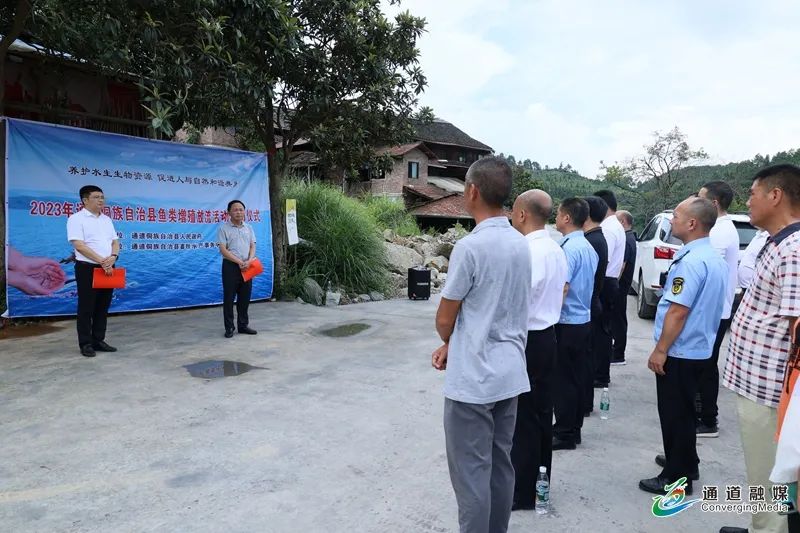 通道融媒7月19日讯:7月19日,我县2023年鱼类增殖放流活动启动仪式在万佛山镇土门村两江口河段举行。县委副书记、县长田刚出席并讲话。副县长曹传鑫及相关部门主要负责人参加。