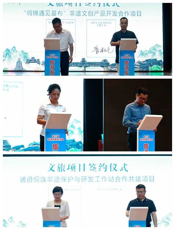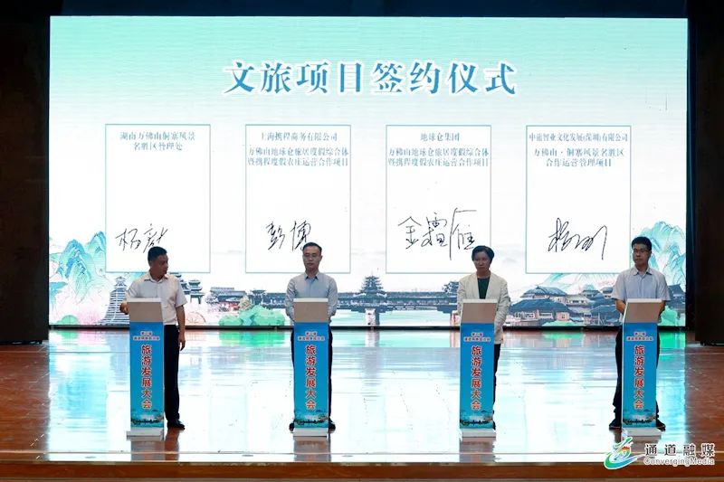 今年来,通道全面贯彻落实党的二十大精神和省、市旅游发展大会精神,全力推进“创业通道,服务周到”营商品牌15条硬措施落实落地,经过前期深入对接洽谈,本次大会达成了一大批招商引资成果,现场集中签约通道侗族非遗保护与研发工作站合作共建项目、“侗锦遇见夏布”非遗文创产品开发合作项目、万佛山·侗寨风景名胜区合作运营管理项目、万佛山地球仓旅居度假综合体暨携程度假农庄运营合作项目、皇都侗文化村和芋头古侗寨元宇宙项目,共计招商引资项目5个,签约金额11.2亿元,涵盖旅游基础设施、文旅综合体、康养服务、酒店民宿等多个领域。