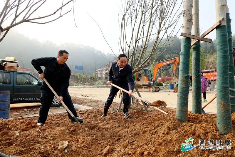 在坪坦乡皇都村义务植树点,县“四大家”领导与干部群众一同挖坑栽树、扶苗培土、填土踏实,每道工序一丝不苟、认真细致;大家分工协作、默契配合,植树现场热火朝天。在大家的共同努力下,一棵棵树苗迎风挺立,传递着春的生机。