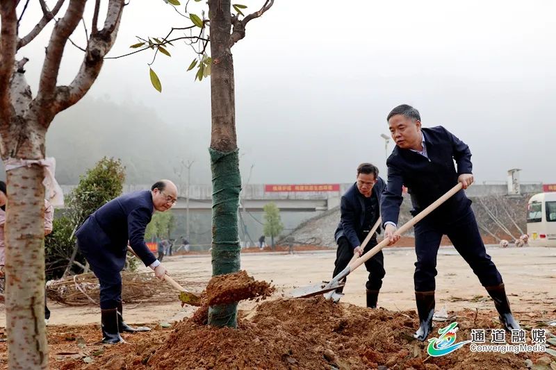 通道融媒3月10日讯:春风吐绿,草木初萌。3月10日,在全国第45个植树节即将来临之际,县委书记毛运鸿,县委副书记、县长田刚,县人大常委会主任夏华,县政协主席刘登富,唐龙、刘发良、龙章义、江飞舟、李世萍等县领导,带领干部职工到坪坦乡皇都村开展义务植树活动,以实际行动掀起全民绿化行动的新高潮。