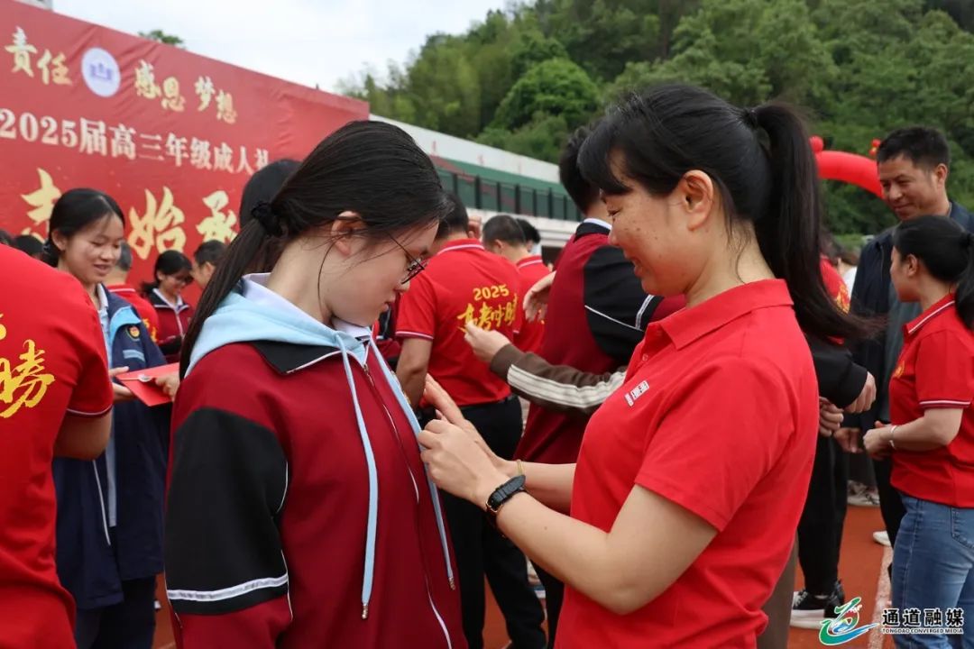 通道融媒5月11日讯:5月11日,通道一中举办“青春·责任·感恩·梦想 ”2025届高三成人礼。800余名高三学子在老师与家长的见证下,以自信昂扬的姿态跨过“成人门”,开启人生新篇章。