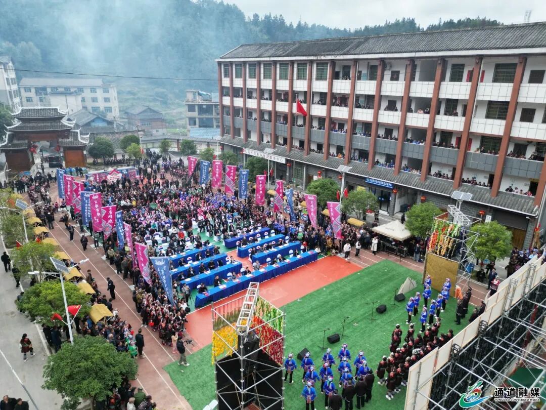 通道融媒11月6日讯:苗乡报喜,大地欢笑。11月6日,大高坪苗族乡举行民俗文化展示暨湘桂黔环“三省坡”区域铸牢中华民族共同体意识示范带建设主题交流活动,全乡各族人民群众与社会各界嘉宾欢聚一堂,载歌载舞、共襄盛事。