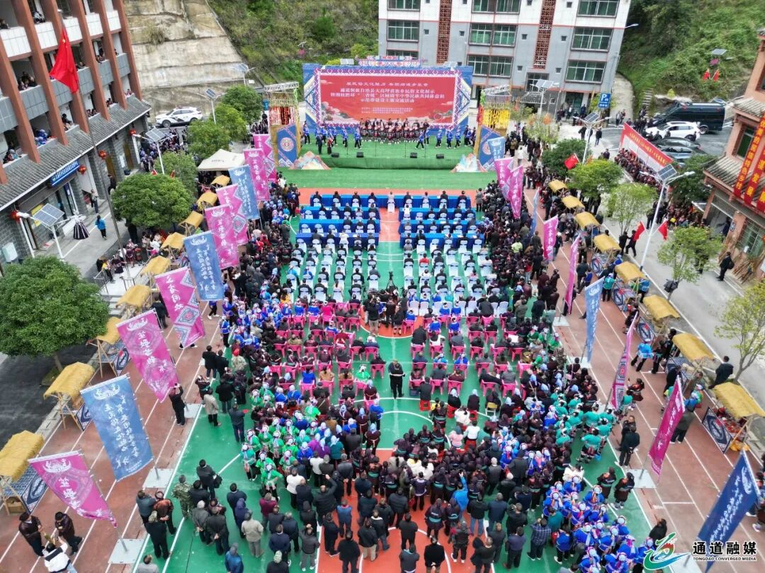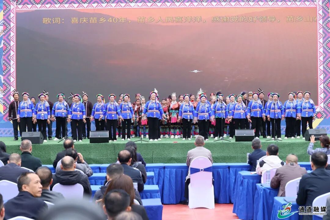 活动现场,笙歌阵阵、彩旗飘扬,处处洋溢着喜庆的氛围。身着传统苗族服饰的男女老少脸上绽放着灿烂的笑容,用那浓郁、醇厚的拦门酒迎接远道而来的宾客。精彩纷呈的《鼓阵苗乡》《苗歌对唱》《芦笙巡游》《新民歌联唱》等极富民族特色节目轮番上演,传递着他们对家乡的热爱和对美好生活的向往,现场观众掌声不断,气氛热烈而祥和,充分展现了大高坪苗族乡各族人民共同团结奋斗、共同繁荣发展的良好局面。